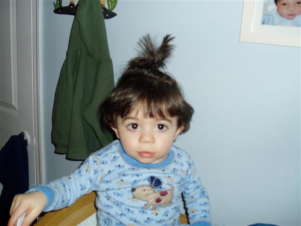 I think the time has come to give my baby boy an official official hair cut. I think things are just getting too out of hand. When there's pony tails involved, it's just gone too far. He is starting to resemble Davy Jones.