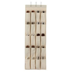 I have a shoe holder that you hang inside the closet door......it has about 20 little "pockets" that you put the shoes in~