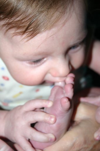 He's adorable! Love the feet in the mouth.