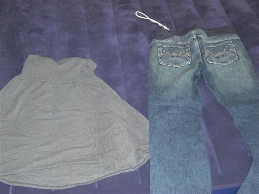 1st pic gap skirt and motherhood maternity jeans. 10 bucks each.