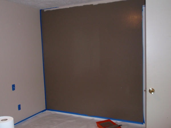 This is us last weekend -- we got the accent walls and trim work painted