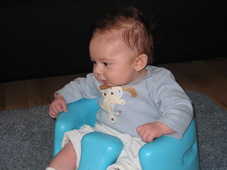 Steven always held his head up very well, but he used to lean to the side in the Bumbo, so every week I just kept trying and finally at 3 months he was able to use it comfortably.