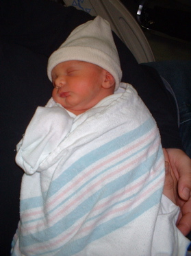 So...at 3:27 PM on 1/10/2007, Lucas James was born! Lucas was born almost 5 weeks early. He weighed 5 pounds, 13 1/2 ounces at birth (19 inches long) and dropped down to about 5 pounds, 5 ounces for the remainder of his stay in the hospital (it's normal for a newborn to lose weight initially).
