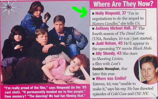 I would watch the sequel to 16 Candles if they made one....