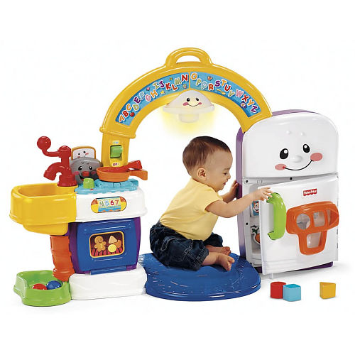 There are lots of play kitchens out there, I'm sure you can find one your DH likes. There is even one that has a BBQ on the back side of it, it's really cute!