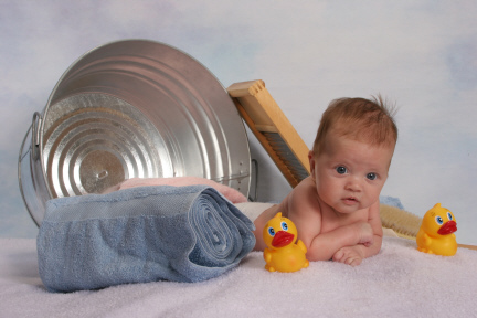 She is 3 months today, I took her this morning, overall I was happy with KK, I got there about 10 mintues after they opened and I had to wait 40 mintues. Isabella napped for about a half hour and then she woke up all smiles, but there was an annoying lady with her 3 kids and she kept pestering the poor photographer. So by the time it was our turn, Isabella wasn't in the best of moods. But she managed to get a few cute ones, I wish there was a smile pic, but oh well. The only other thing that bothered me and I didn't realize, in the bath pic, the pink towel should have been in front of the blue one. Overall I had a pleasant experience. Image Attachment(s):
