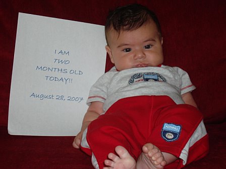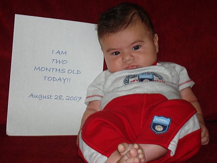 What a big boy!!!! Paige is 7 months and only weighs 2 more pounds that him.