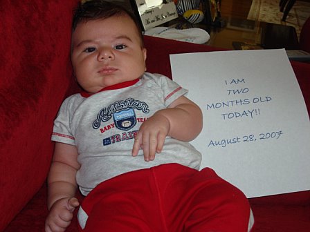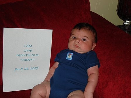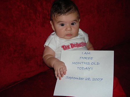 Although whats funny is the first picture...the one month one... I thought THAT WAS his 3 month one