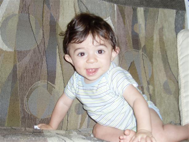 I love his hair! Gosh, I am feeling the pressure for posting my 8 month old! We should have a gtg for all the 8 month olds!!! His smile is great too.