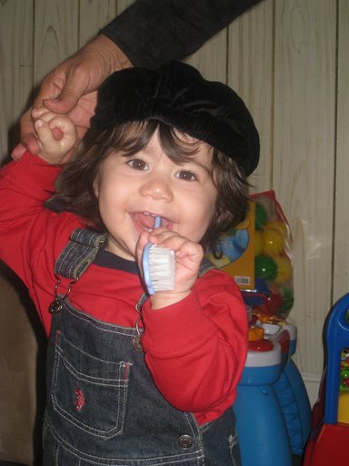 Aw, cutie! My DD loves to play with her hairbrush too.