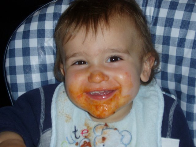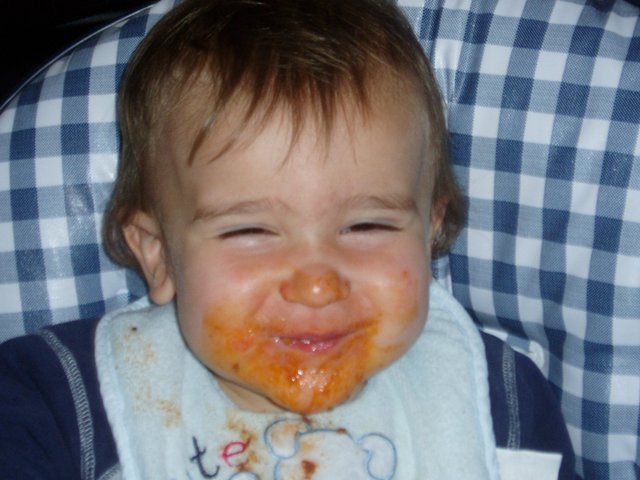 he is so adorable I love when they get all messy they look so cute but itsthe cleaning up thats a pain in the butt lol lol lol