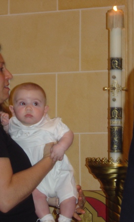 It was August and hot when Andrew was baptized, so we changed him into shorts and a t-shirt! Nothing fancy at all, we were at home!