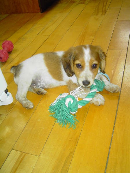 We adopted him from NSAL like a month ago. He is a 3 moth old daschund-beagle mix. He's been fighting kennel cough though. And my parents are keeping him for a little until he gets bigger and better so him and Sammy can spend more time together. We visit all the time but I can't wait to bring him home!! Image Attachment(s):
