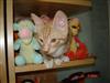 domino in a gap bag., oreo in a box and dommie in bowl we got as a gift.