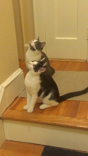 Rebel is the black and white domestic short hair (totally lives up to his name) and Dallas is the grey and white domestic short hair (complete and total mush at all times). Image Attachment(s):
