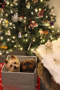coco is the shih-tzu and chloe is a pomeranian-mix.