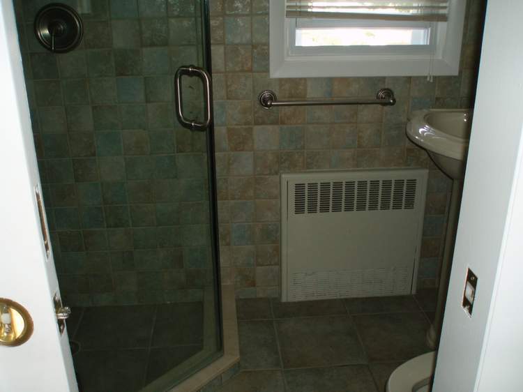 The nice bathroom is upstairs on the second floor. I actually really love the tile work and colors. That's probably the only room in the house that does not have to be done over.