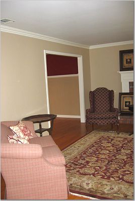 Sorry for the hijack. Can I ask you what 2 colors are in the room off of your living room? Do you have pics of that room?