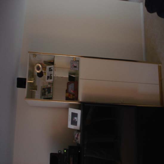 Also, we are looking to get rid a lighted 3 pc cream colored lacquer wall unit