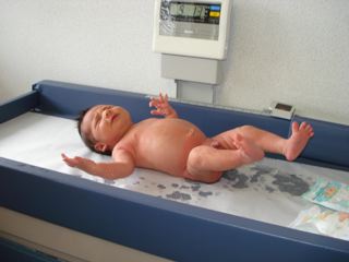 i had to bring the little guy in for a 2 week appt since he lost a pound from when he was born to his 1 week apt. they told me they wanted to see him gain some weight. he weighed 9lbs 8oz when he was born and today he weighs 9lbs 13 oz. when they put him on the scale he started peeing all over the place. its was like a firehose out of control. then the doctor put him on the exam table and he pooped. i was so embarrassed.