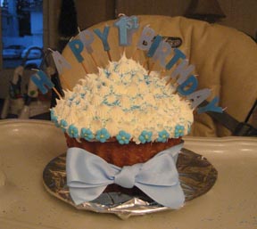 DS turned 1 today!!! Here is my first try of the giant cupcake. His party is on Saturday.