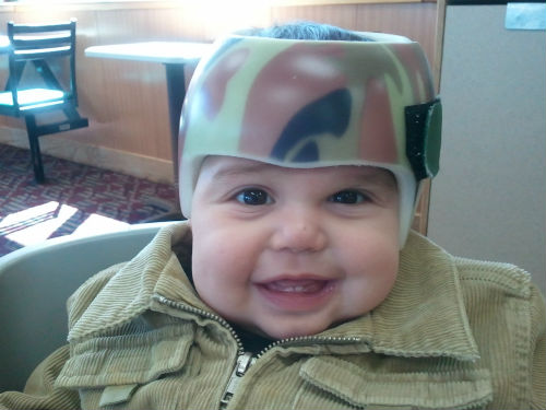 He is a yr old and looks great and Im so thankful that we did go that route and not chance it by not getting him the helmet.