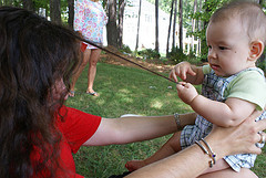 Is he pulling your hair? Too cute!