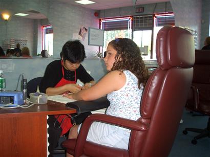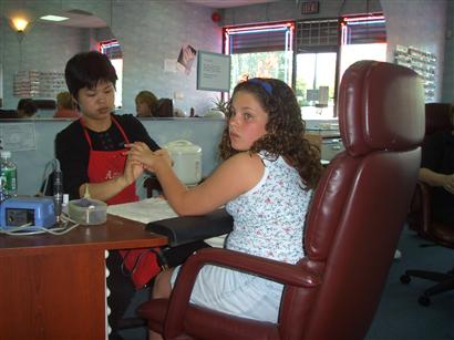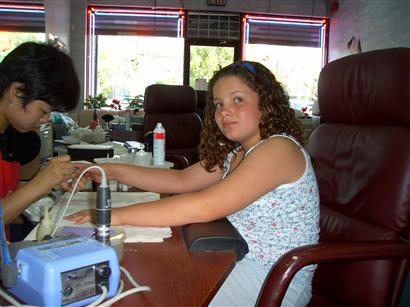 do you remember me telling you about it? the one where the boy asked her well today we went to the nail salone and she got a manicure and a pedicure her first one! she just got a basic one color coat and she is going to wear a jean skirt and a tee shirt with a beach theme on it. (the dance is a beach theme) her shoes are nice flip flops. i will take pic tomorrow and post them. her are the pics from today at the nail salone! she is growing to fast for me Image Attachment(s):
