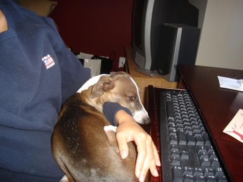 LOL...my doggie loves to lay on my lap when on the computer too