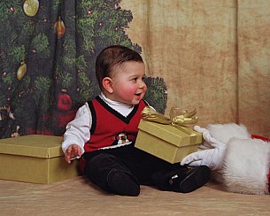 What a cutie!!! I just LOVE the one with Santa handing him a gift!