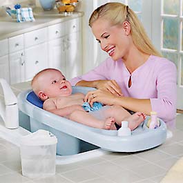 I have the same one.... mine came with a cradle attachment to hold the baby when they are little. It's so easy to use, it fits over a single or double sink and the baby doesn't slip.