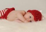I would use the red/white one definitely, and the one of her sitting up propped on her arms too if it would work. So cute!