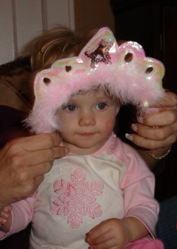 one of our neighbors who is quite elderly...(i think she's like 88 years old).....well, we didn't want to bother her trick or treating, b/c she has a hard time getting around..she's a little frail... at about 7:30 last night, she sent her daughter over with some raisinets and pepperidge farm goldfish for the girls,....she said that she was sorry she missed us. (apparently she was out with her daughter)