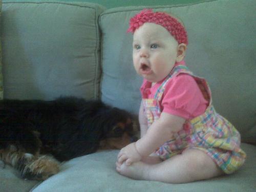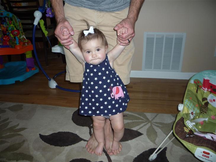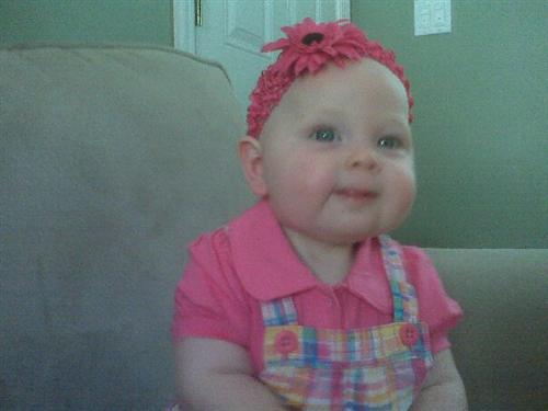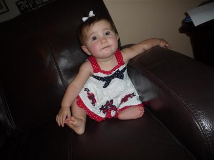 DD is 8 1/2 months old now. She is 27inches and 17.8lbs. She still have no teeth but that hasnt stoped her from eating everything and anything she can get her hands on! lol SO far she has had waffels, pancakes, eggs, meatballs, honeydew, pastina, strawberries, pineapples, grapes and french fries. lol Shes crawling everywhere and starting to pull her self up to a stand on the furniture. I cant believe how fast time is going!!! Image Attachment(s):
