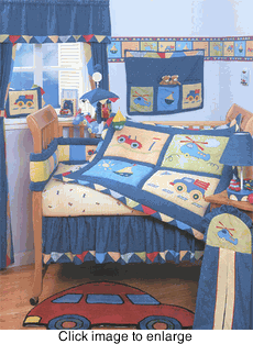 We're going with a sports theme and we used the "All star" bedding pattern (the picture doesn't do it justice though. Makes me wish I had a digital camera so I could take pictures of our own set-up): Image Attachment(s):