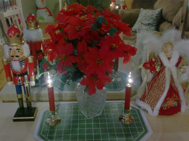 I didn't take any pics of the outside..we didn't go too crazy outside...our house is so hard to decorate because its so tall