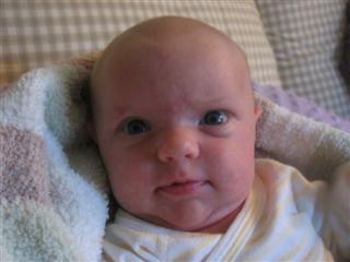 Bella went for her 4 week 5 day check up the other day and she's weighing 9 lbs 2 oz!! She's gaining at least a pound a week. Guess mommy's doing something right She seems to be growing out of her "reflux" stage, so life around the house has been MUCH better, even though she has gas issues that seem to be painful for her She's still sleeping through the night and getting more and more playful and active during the day. She smiles a lot and coo's and grunts It's funny. She's turning into such a little person now!