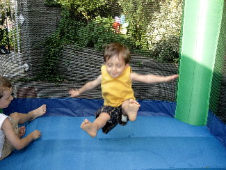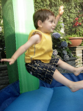 We went to a BBQ on Sunday at a friend's house and they have one of those inflatable little tikes bounce house. DS loved it!!! He kept jumping up and then landing in a sitting position. It's great that he enjoyed it but now he thinks the bed is the bounce house...