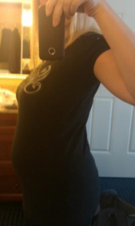Here is my belly at 5 weeks 2 days. I look 3 months already...so difficult to hide it at work Image Attachment(s):