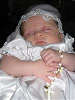 I am working on a thank you card for DD's baptism. I absolutely love this one picture but she is sleeping in it and am not sure if I should use this one or go with one with her eyes open. This was taken right after she was baptized by the priest-she had been fussing the whole time in the church but became completely peaceful as the water was poured over her head. Here is the pic-what do you think? Image Attachment(s):