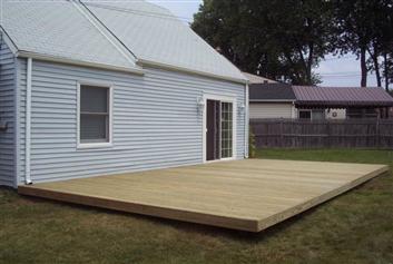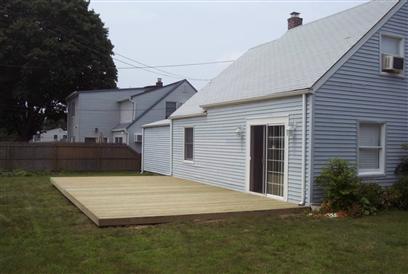 We have a levitt cape and had a 16X33 Wood Deck put down in the back of the house. It is the full length of the house up to the breezeway......