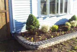 We did a brick walkway and had brick done around our flower beds.