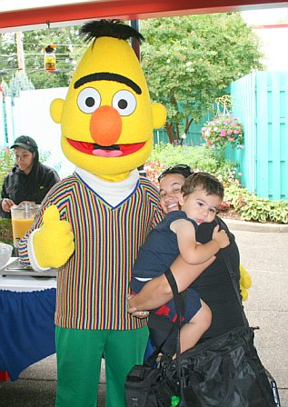 We had breakfast with Cookie and friends (The Elmo breakfast was sold out) and it was great. Cookie, Bert, Ernie, Big Bird, and Abby Cadabby were all there and went from table to table taking pictures with the kids. I didn't mind the breakfast - it was no gourmet meal or anything, but I don't expect that when going to this kind of place. Jack was petrified of the characters (as you can see in the pictures LOL)