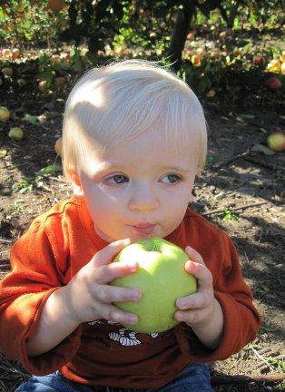 It was the first time I ever gave him an apple to hold and eat....he LOVED it. He wouldn't let go of it the whole time we apple picked. If I wanted a bite, he wouldn't let go of it, he would hold it while I took a bite. So cute!