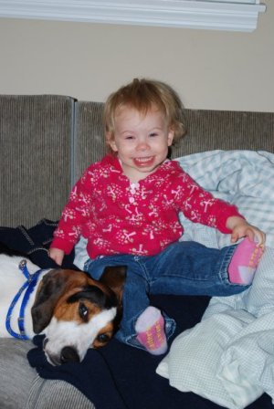 My dog just got CRAZY sick last month and we had to put her down. She was only 5 years old. She was fine one day and dying the next. I am SOOOO devastated but, I wanted to post a pic of them together anyway. I ALWAYS thought that Liam would grow up with Daisy as his best buddy..