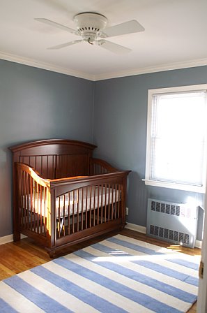 I'm still on the fence about that rug - I like the stripe, but the blue is a bit bright - I'm hoping once I get the window treatments and bedding and wall decor in, it won't be so obvious the color is a little bit 'off' -