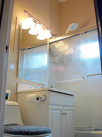 Below is a pic of our master bath.....I want to do colors that will give it a "spa-like" feel.....our home is in NC, on a few acres and I want to kind of bring the outside, inside.....am I making sense? I was thinking very light green ceiling, darker green walls.....alot of candles......some plants......does this sound terrible? Would those colors look good with the beige tiles I have?