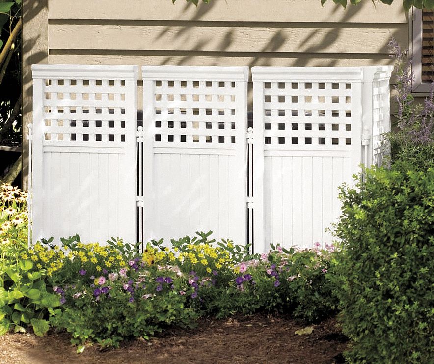 we cannot put a permanent fence in as it needs to be completely removable should we needs service/replacement. I think have looked into every possibility but nothing seems perfect. We have a heat pump which looks like a central AC unit... I don't want any little fingers getting near that and would also like to "hide" all the equipment a little.