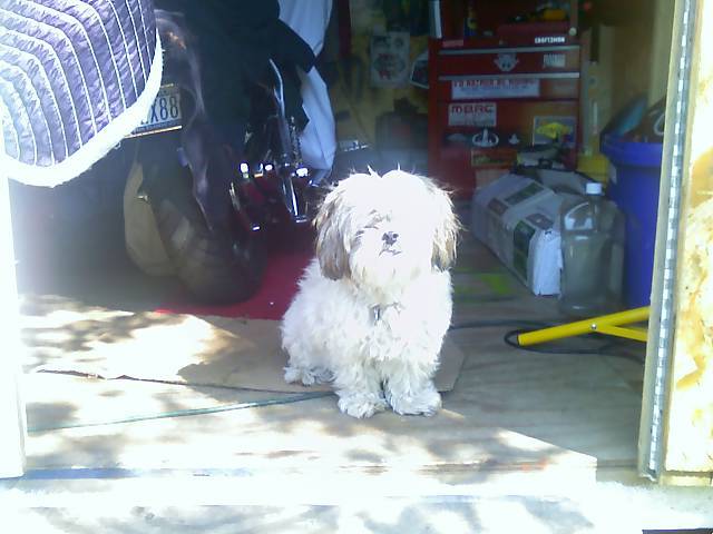 this is rocky, my lil bud the 2nd pic is him in dh shed, one day he is gonna lift his leg to the bike,, LOL Image Attachment(s):