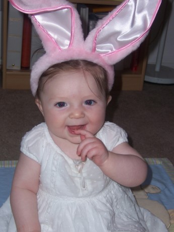 Jenna collecting her easter eggs when she woke up (pardon her messy bedhead ;)